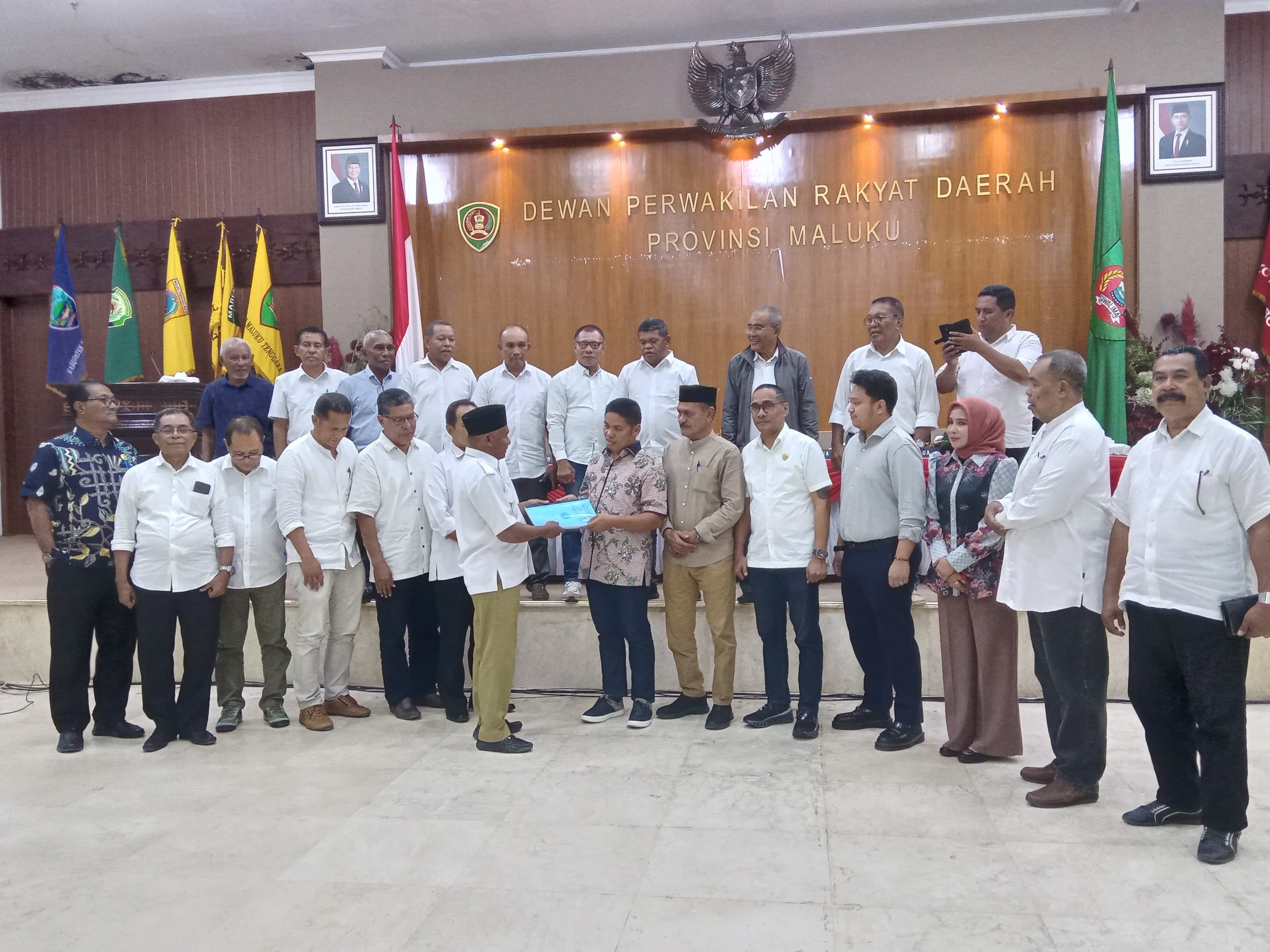 Tim Konsorsium Serahkan Dokumen DOB Kota Lease ke Komisi I DPRD Maluku di Ruang Paripurna