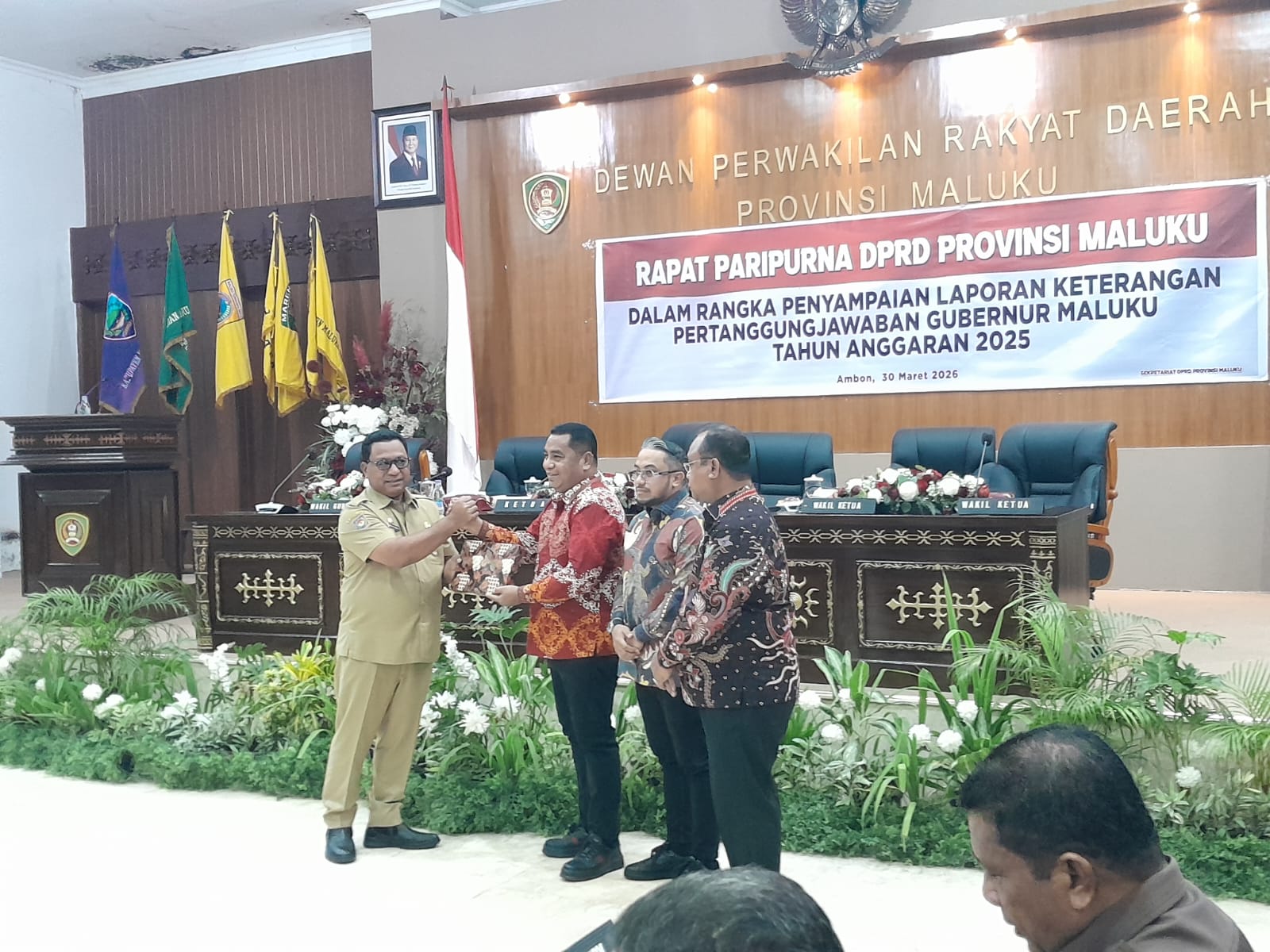 Paripurna dipimpin langsung Ketua DPRD Maluku, Benhur George Watubun, yang dihadiri Wakil Gubernur Maluku, Abdullah Vanath, serta para anggota DPRD, dan jajaran OPD Pemprov Maluku.